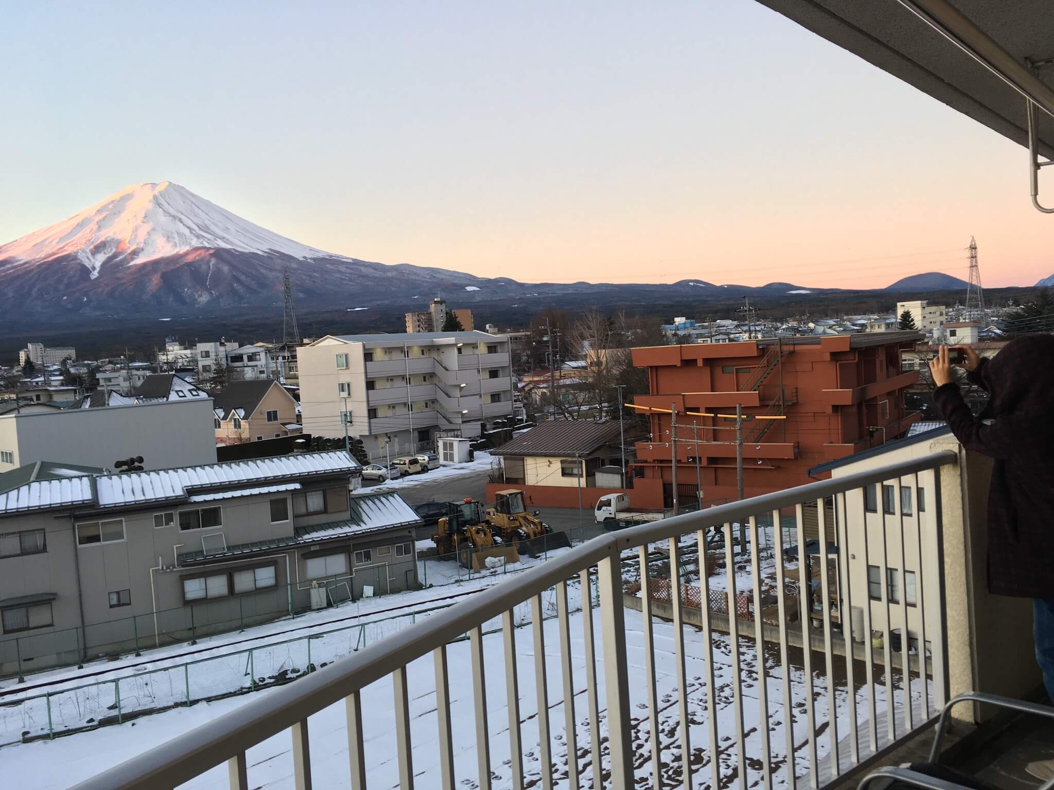 這間民宿實在太屌了,在陽台就可以直接看到富士山,還可以邊吃早餐邊看